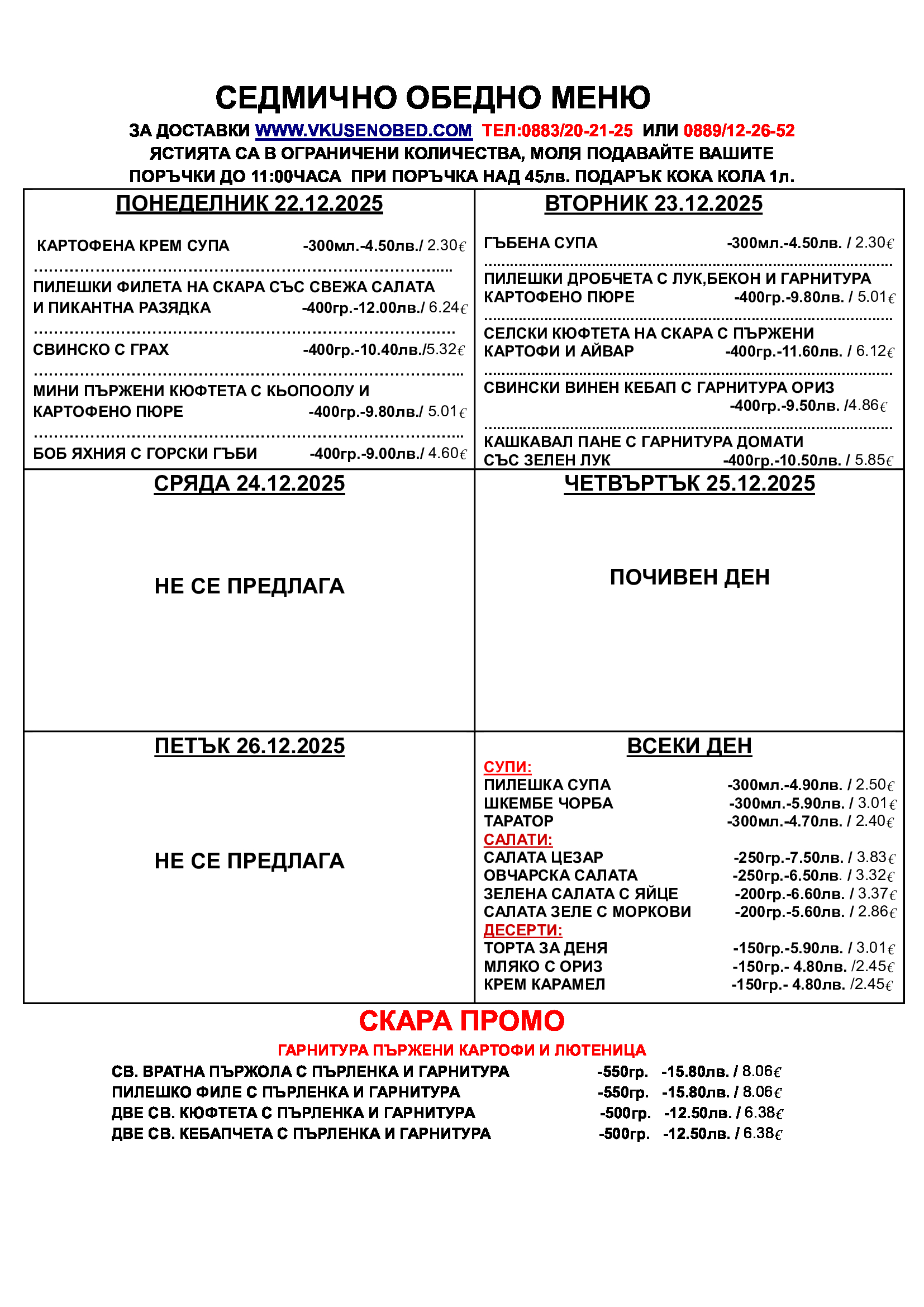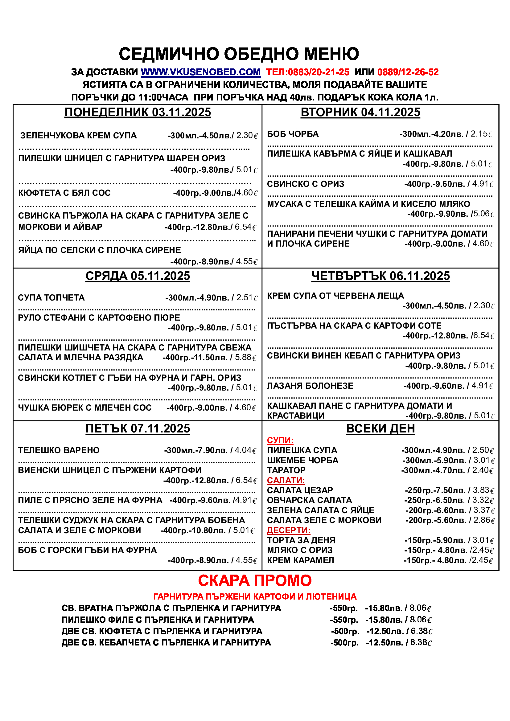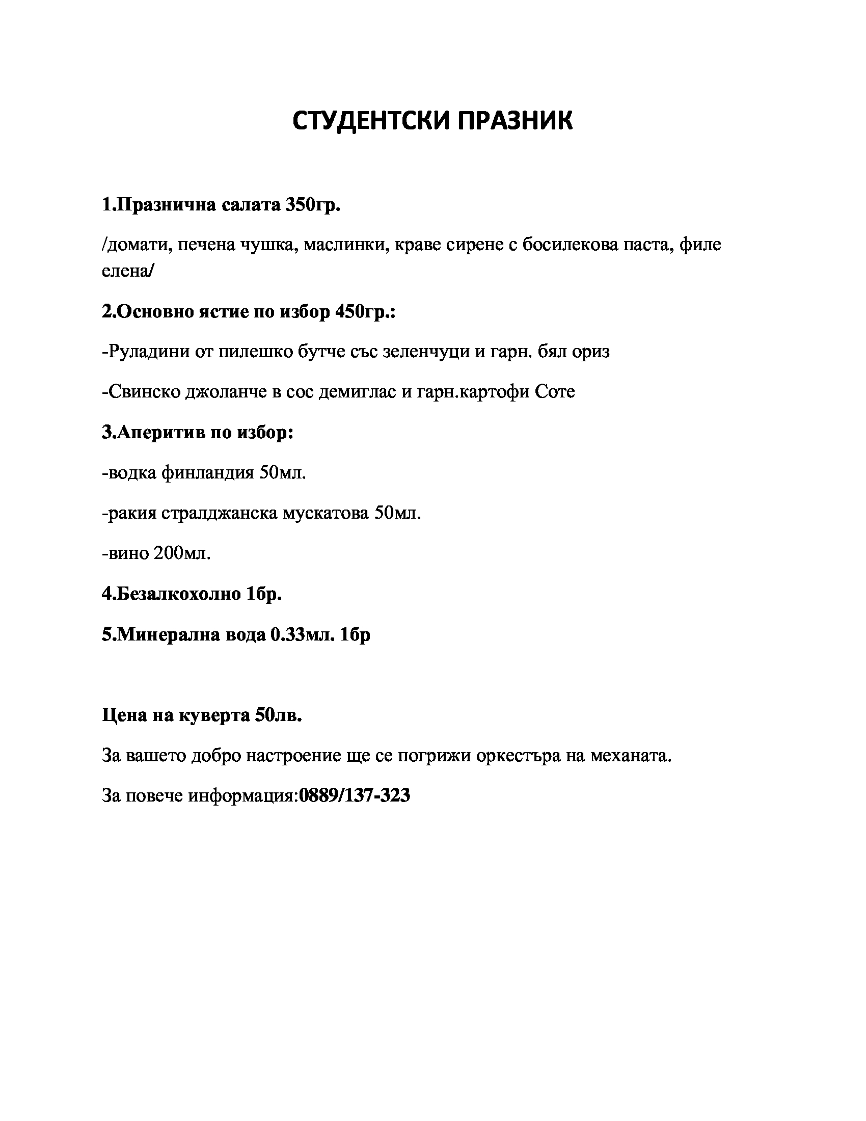 Моля, направете резервацията поне 2 дена по-рано.